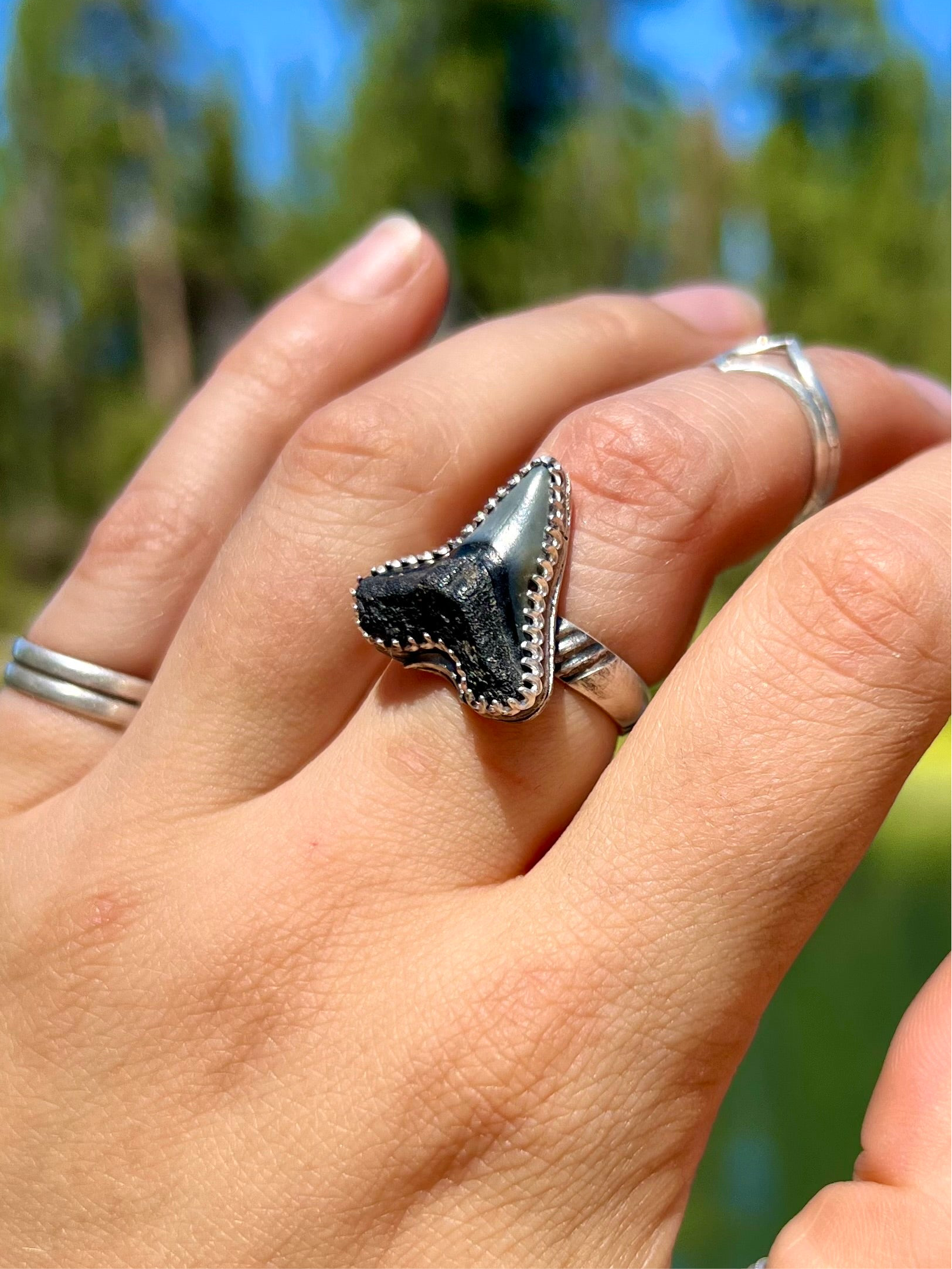 Materials: Sterling Silver, Fossilized Shark Tooth